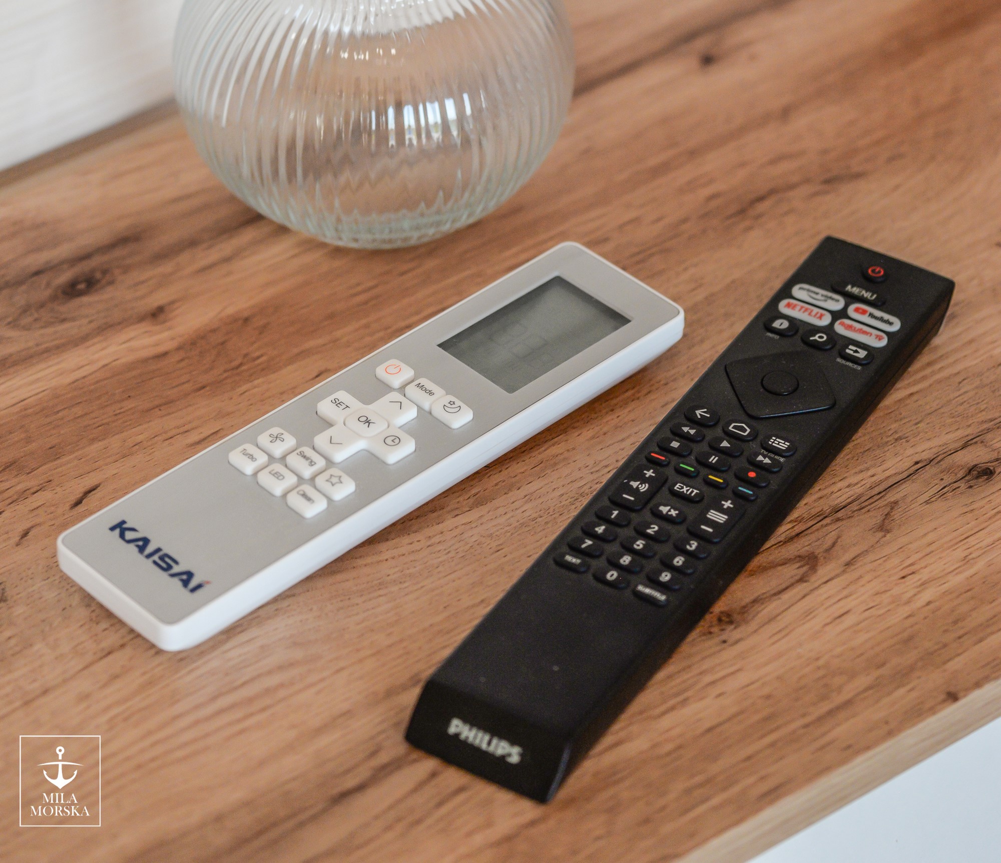 TELEWIZOR LED, ROZKŁADANA 2 OSOBOWA SOFA, STÓŁ Z CZTEREMA KRZESŁAMI. KOMODA, KLIMATYZACJA